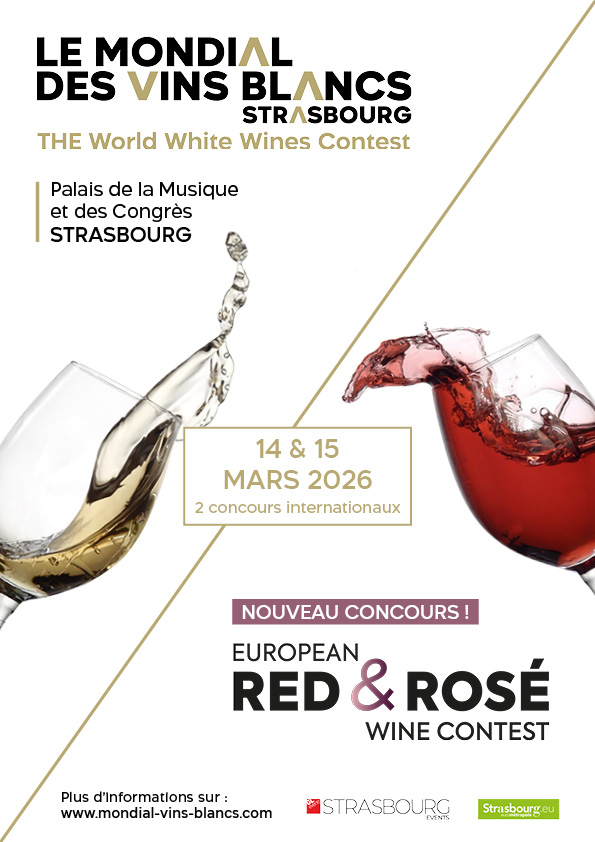 Le Mondial des Vins Blancs, seul concours dédié à la diversité des vins blancs du monde, revient les 14 et 15 mars 2026 à Strasbourg pour une 28e édition. 60 juges experts français et internationaux dégusteront des vins venus des 4 coins du monde.